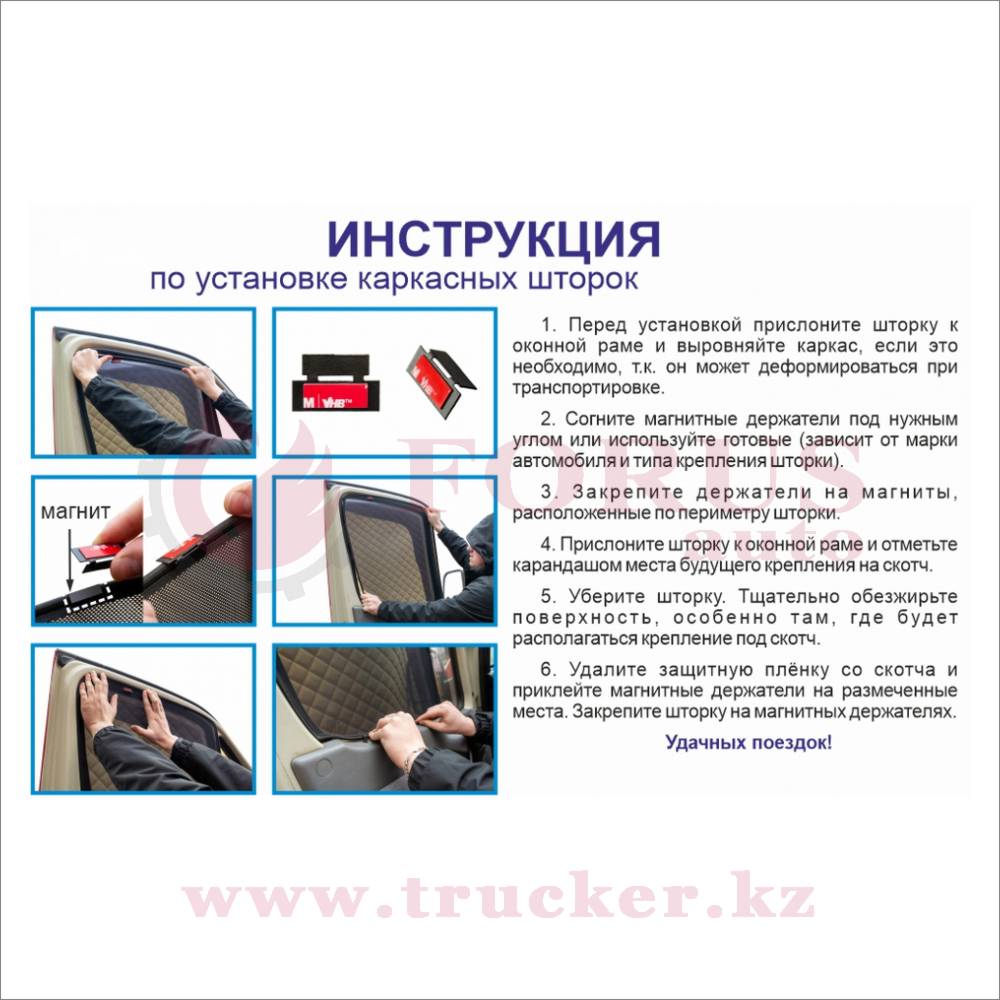 Каркасные шторки на магнитах устанавливаются на оконную раму. Сделаны по размерам данных моделей. Защищают от проникновения в салон насекомых, а так же в салоне становится комфортнее. В жаркое летнее время на стоянке каркасные шторки могут служить как противомаскитные сетки. Легко и быстро устанавливаются и снимаются (2-5 секунд), с помощью специально разработанных магнитных креплений.